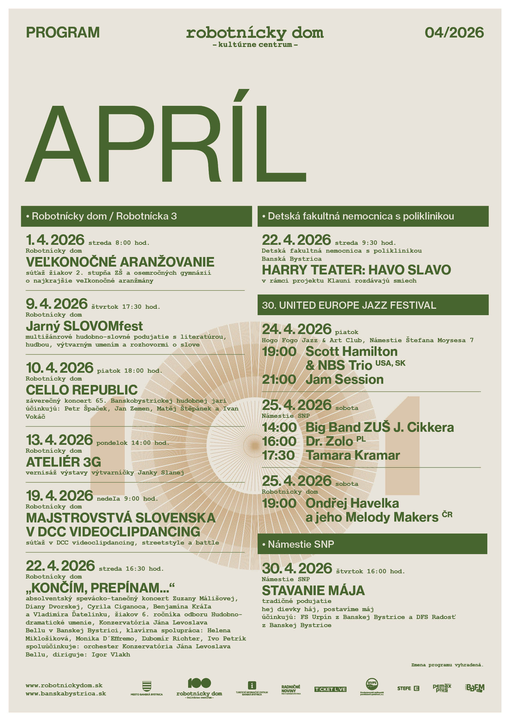Robotnícky dom – APRÍL 2026